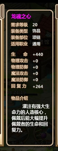 龙魂之心制作所需材料:较小的魔石×13,铁矿石×5,黄铜×2,3600金币
