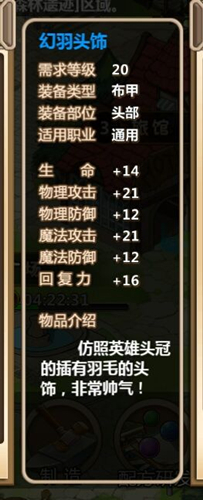 幻羽头饰制作所需材料:棉布×9,较小的魔石×5,黄铜×1,2400金币