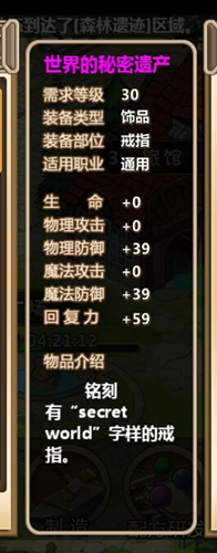 世界的秘密遗产制作所需材料:中等大小的魔石×11,金刚石×6,青金×2,6000金币