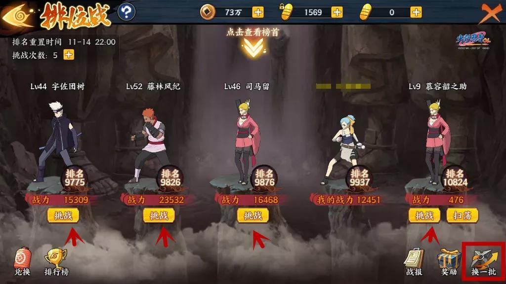 Tip3:如果当前页面中没有你想挑战的对手,点击屏幕右下角的【换一批】,系统就会为你重新分配对手。