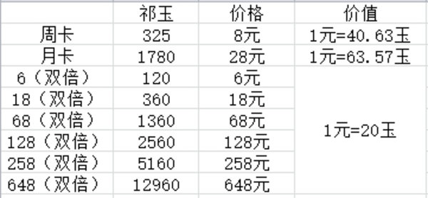 氪什么都不如直接氪玉来的划算,而月卡和周卡又是氪玉最划算的。与其在商城氪乱七八糟的包,不如攒到648趁着披风氪一波,玉多,还有竞技场顶配。除此之外,腾讯视频、天天快报、qq浏览器、应用宝每周签到四天会有25祈玉。