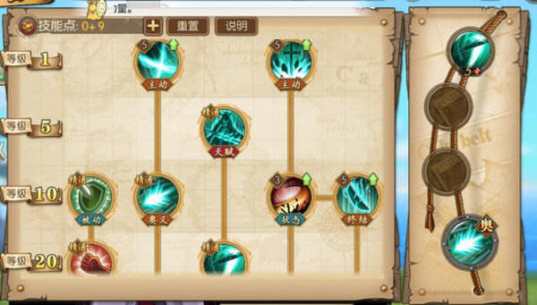 所有被动天赋点满,斩裂之类的主动,8星之前都不加。第一,伤害跟不上。第二,全体给对面加怒气。记住就【曙光】【奥义】