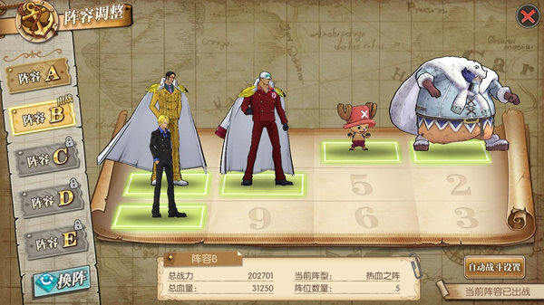吞吞点了复活技能,乔巴带加血和奥义,黄猿带光柱奥义,光柱奥义满,山治带三级绞肉和踢计套餐和奥义,这三个满,这样不用吃药,自动就可以过,楼主47级,这套阵容不到21万战力。