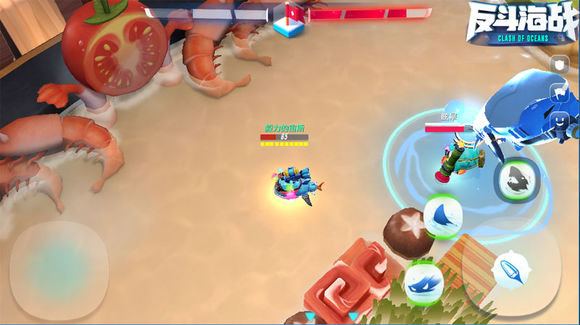 非常霸气和炫酷的大招,自带位移和控制效果,能对团战造成一锤定音的效果。这个技能有延迟行,如果对手一直在直线奔跑中,几乎很难命中。但如果对手在绕圈移动或者被我方其他角色控制的情况下,那是最佳的使用时机,1秒后跳起来咬住一群人,又疼又带眩晕的控制效果,再加上鲨鱼本身的近身主炮就很疼。所以说鲨鱼的大招用得好,团战赢一半。