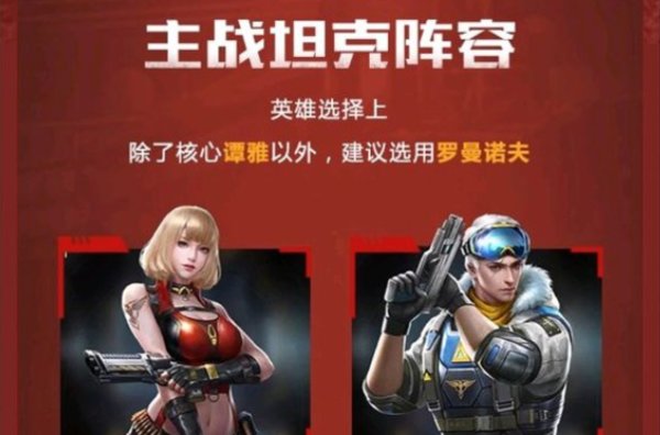 以谭雅为核心的主战坦克阵容,除了核心谭雅以外,建议选用罗曼诺夫。谭雅+罗曼诺夫的组合是最大化加强主战坦克的攻击能力,所以在芯片镶嵌时建议优先选择提升攻击的芯片,后期可以用打团。