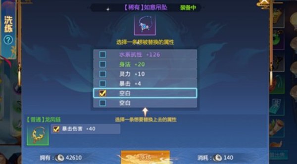 另外,一件装备上的可洗炼属性是有很多种的,我们在选择属性进行洗炼的时候,可以优先选择适合自身门派的属性进行洗炼,这样才能够让自身的实力得到真正的提升。例如鬼炼,在项链的属性洗炼选择时,就可以优先选择暴击伤害属性和暴击属性来进一步提升自身的暴击能力。