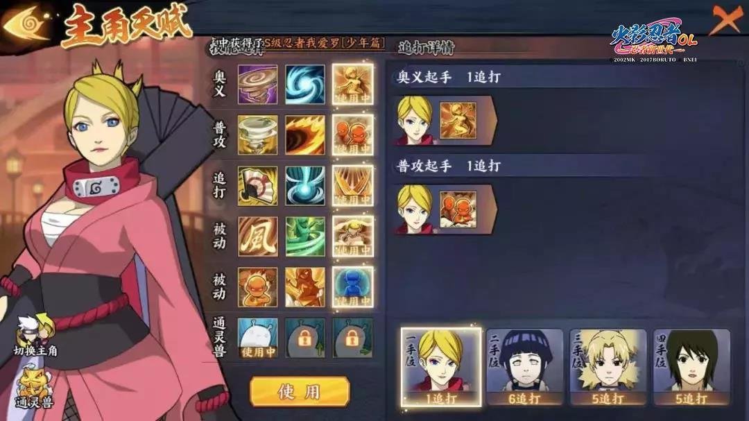 技能搭配:奥义方面可选择【激励之舞】,普攻选择【影分身之术】,被动选择【风遁·风之连刃】、【超级色诱·后宫术】和【查克拉激活】。