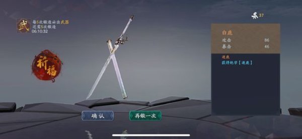 碎片刷满以后每天送的打铁还是要打的,祈福刷成五次或者四次必出武器,万一出了不就省了很多碎片?