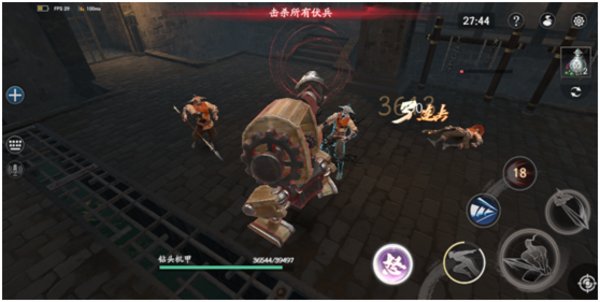 击杀掉精英枪兵之后,我们会进入一个较宽阔的场地,然后会刷一些小兵和一个精英兵。面对大量敌人的时候,通天钻要以攻代守,我们可以反复使用重击的旋转伤害效果来为自己防御。
