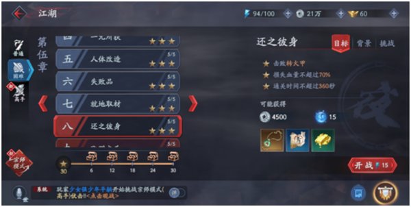 流星蝴蝶剑江湖第五章困难还之彼身怎么打?流星蝴蝶剑江湖模式中有很多的关卡挑战,每一关都会有丰富的奖励。有些玩家可能还不太清楚第五章困难还之彼身那关怎么过,和小编一起来了解一下吧!