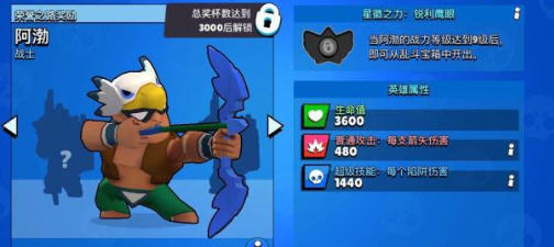 作为3000杯才能拿到的英雄,阿渤凭借着均衡的各项能力赢得广大玩家的喜爱,他的普攻伤害虽然不是很高,但大招的单发伤害高达1440点,3发大招陷阱如果全部命中,可造成4320的超高输出,基本可以做到秒杀坦克了。不过一般玩家触发了阿渤的陷阱后,都会选择走位躲开,但即使命中一发也足以对敌人造成巨大杀伤。阿渤的星辉之力技能效果非常棒,能够将侦查范围变为两倍,可以更远地发现躲在草丛里的敌人,这在3V3图中是非常吃香的。