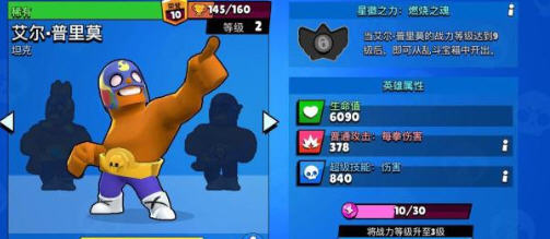 艾尔·普里莫是游戏中肉度最高的英雄之一,另外一个是弗兰肯,5800的生命上限让他可以肆无忌惮地冲向敌人后排。在足球、金库这两大玩法中,艾尔·普里莫的表现尤其出色,大招的超远位移和瞬间的近战高爆发很适合这两张图的作战机制。在宝石争霸和赏金猎人两个模式中,艾尔·普里莫比较适合草丛比较多的地图,可以通过自己的高移速快速击杀敌人的后排脆皮。实战中,这个英雄比较怕雪莉、公牛这两个“坦克杀手”,如果敌人有这两个英雄尽量绕道走。