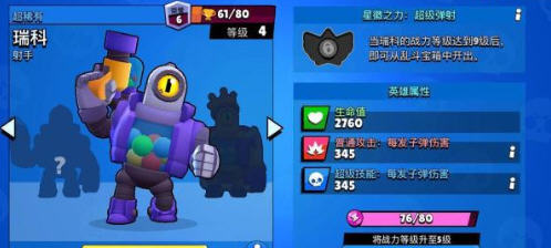 瑞科的普攻机制非常特别:他的普通攻击在集中障碍物后会进行弹射,并增加射程,瑞科的直接射程就有9.67之多,再加上弹射射程,可以达到15左右。而瑞科的持续输出能力也是数一数二的,他的普攻伤害跟柯尔特达到了同一级别,但弹射射程和命中率远优于柯尔特,大招的爆发能力也相当强劲。但瑞科的操作难度较高,想要更好地利用弹射就要对他的弹道掌握地更熟练。瑞科的星辉之力很强,让他的普攻在弹射之后提升80点伤害,也就是将近20%的输出。