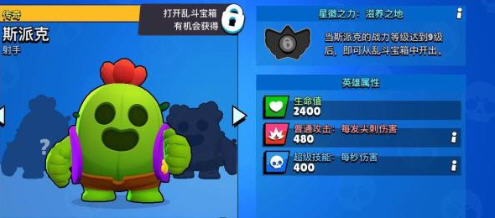 斯派克被玩家誉为《荒野乱斗》最萌英雄,仙人掌造型非常可爱。斯派克的攻击也非常特殊,扔出的仙人掌球会爆炸散射,是一个非常不错的消耗英雄。斯派克在解锁星辉之力后,大招就变得更加多用,不仅可以打出高额伤害,在关键时刻也可以作为回血技能使用。