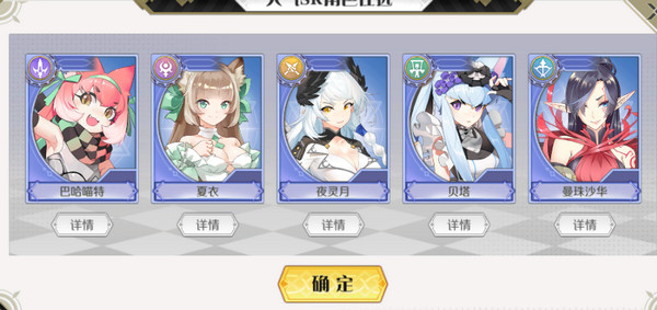 这个时空之盒中包含全系5个职业的SR,玩家具体的选择方案最好是根据自己的阵容来定,比如你缺勇士就选巴哈喵特,缺魔导就夏衣。单纯从人物的强度来说,贝塔、曼珠沙华和巴哈喵特都不错,因为排行榜玩家都选他们哟!