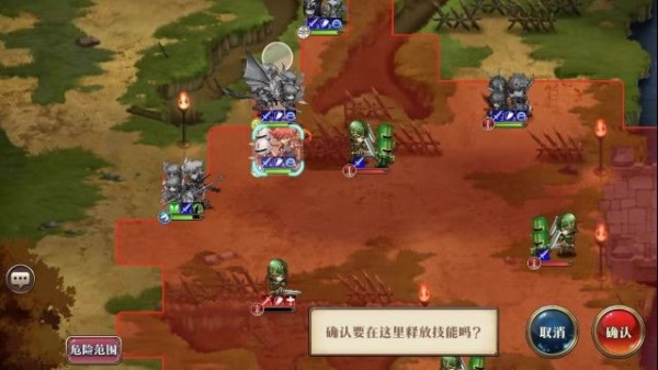 利昂骑士精神打残上方步兵,再往左上走,艾尔文砍掉下方弩车,雷丁再动向下走开神卫。