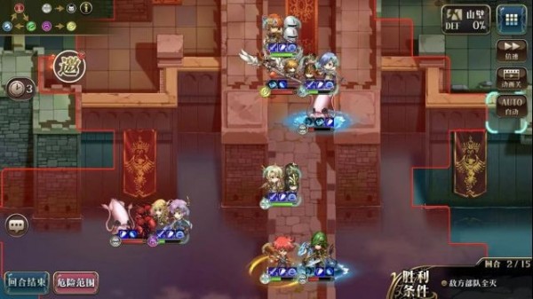 之后右侧敌人靠近,艾尔文加利昂收掉弓手,剩下1个法师1个枪兵收掉过关。