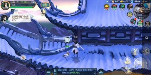 到剑园和纯阳弟子对话,知道鹤跑到屋顶了,要去屋顶找鹤,跳屋顶的时候要打开‘心眼’不然跳不上去,找到仙鹤和它对话,对话完它就飞老君宫了
