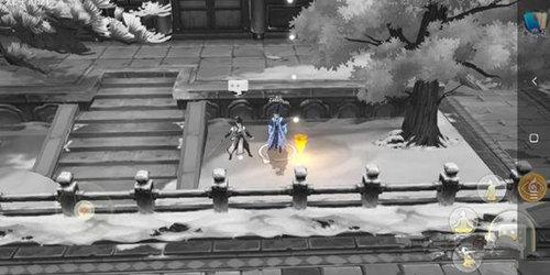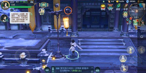 到了老君宫又让你飞屋顶,这次上屋顶要先跳上灯柱(图中红圈位置),借助灯柱跳上屋顶再开启‘心眼’,等你飞上去你会发现仙鹤鸽了你,这个时候就要找掌门问问了