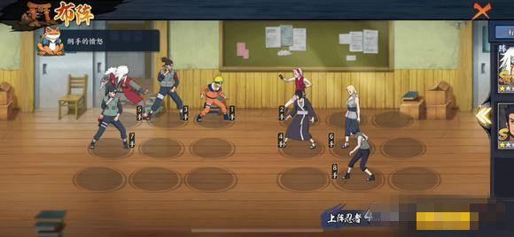 火影忍者OL挑战屋修行风波4布阵图如下: