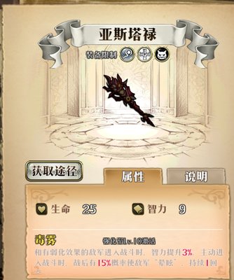 这种情况下,如果把武器换成【亚斯塔禄】时,伤害还能更进一步的提升,并且战后还有30%的几率使普通非BOSS型敌人眩晕一回合,强度是非常可怕的。