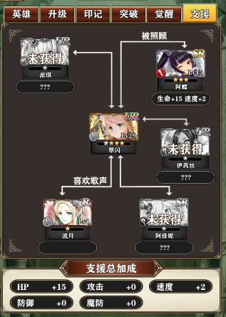 白星羁绊商店兑换碎片,大概2-3天能得15片,突破比较简单,与同组合詹堤安,娜拉有支援,三被动回血,全图减魔抗,加攻击,唯一缺点身板比较脆,支援起来会相对好点