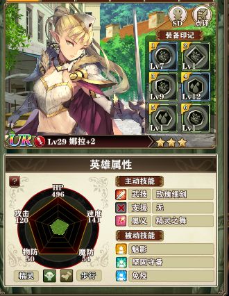 印记:飓风套或者高属性,因为这套阵容都要飓风套,印记不多只能给她高属性,毕竟是近战