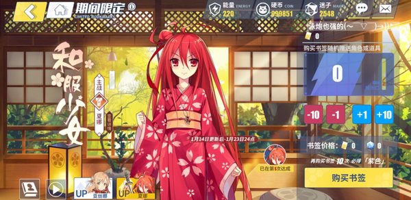 和服夏娜的打法也很明确,0010然后无脑4费,基本用不到连携和sub技能。按这个出招顺序能迅速叠满真红,然后她的4费就非常imba了。不过值得注意的一点就是她的4费不能挂真红,只能刷新真红的持续时间,所以第一轮是锁定要用0费的。