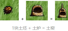 要制作土窑,需要三块土坯,通过将1块粘土与1个芦苇捆或秸秆放在一起制成的土坯。把圆石放到土坯上,做基座;然后把剩下的2个土坯加入基座,就会形成土窑。