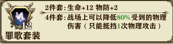 4件套:战场上可以降低80%受到的物理伤害(只能抵挡一次物理攻击)