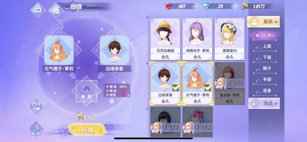 点击两种已拥有时装来合成全新时装~(有机会合成非卖时装噢)