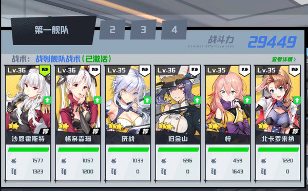 所以阵容可以沙恩北卡格奈厌战鸾皇家方舟,后面把约克城换满后把厌战换掉。