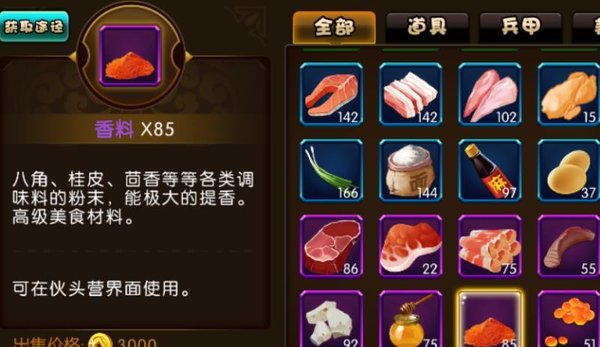 3.美食材料还可以通过材料商店购买,建议有能力的玩家购买紫色材料,其他颜色性价比很一般