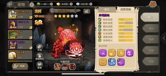 猫头熊要想获得比较好的输出效果,需要兼顾物攻、速度和成长这三个属性。