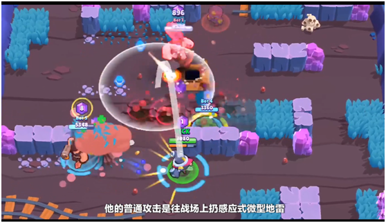 普通攻击:是往战场上扔感应式微型地雷,如果有敌人走过,地雷会立即爆炸,没有敌人走过会在几秒后自爆。