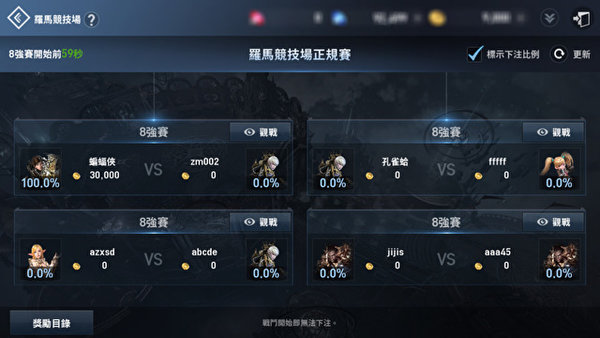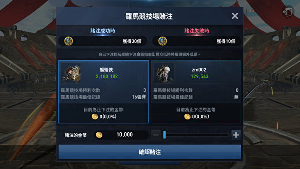 玩家参与赌注将可获得斗争徽章 其他罗马竞技场优化内容方面,包含新增可以在对战表介面上查看即时下注比例,也可查看当下最热门的战斗,以及观看赔率来决定要下注的战斗。