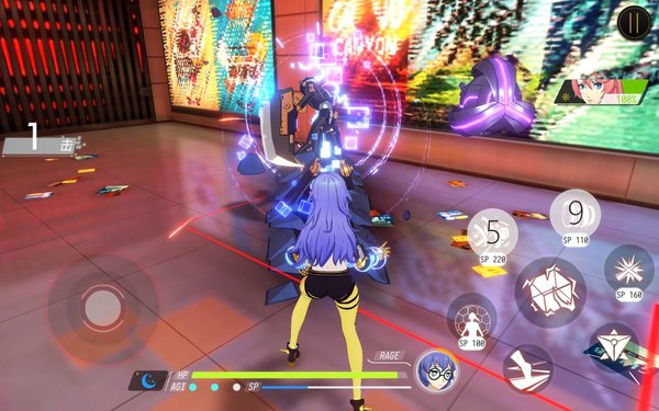 战斗模式方面,打击感非常棒,刀刀都能够感受到碰撞的反馈。但战斗的视角没有崩坏3那么夸张,变幻的不是很复杂频繁,技能的连招也相对比较普通简单。崩坏3的战斗画面非常华丽,因为其本身技能就非常华丽,而VGAME的技能效果相对要平淡一些。