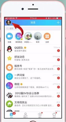 1.首先打开手机【QQ】,然后点击左上角【个人头像】图标
