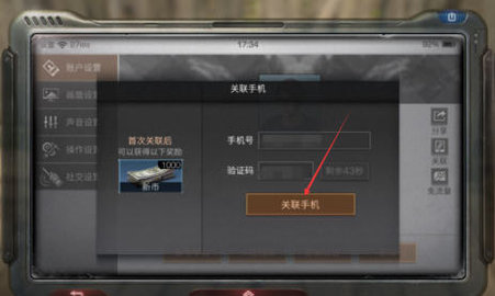 5、玩家完成手机号码以及验证码的输入后,接着再点击对话框中的【关联手机】功能。