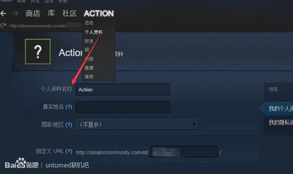 5、修改STEAM个人资料名称。