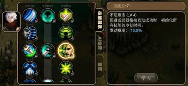 推荐技能4不屈意志:回避或是武器格挡效果发动成功之后,则初始化所有的技能能却时间。