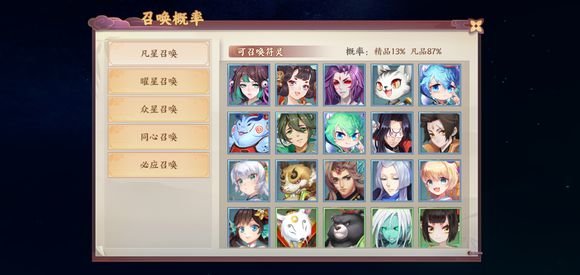 云梦四时歌游戏中有召唤系统,这里你可以抽符灵有机会获得想要的绝品符灵,如唤分为:凡星召唤,曜星召唤,众星召唤,同心召唤,还有必应如唤,下面把几个常用的召唤系统玩法和获得极品符灵概率给大家分析一下。
