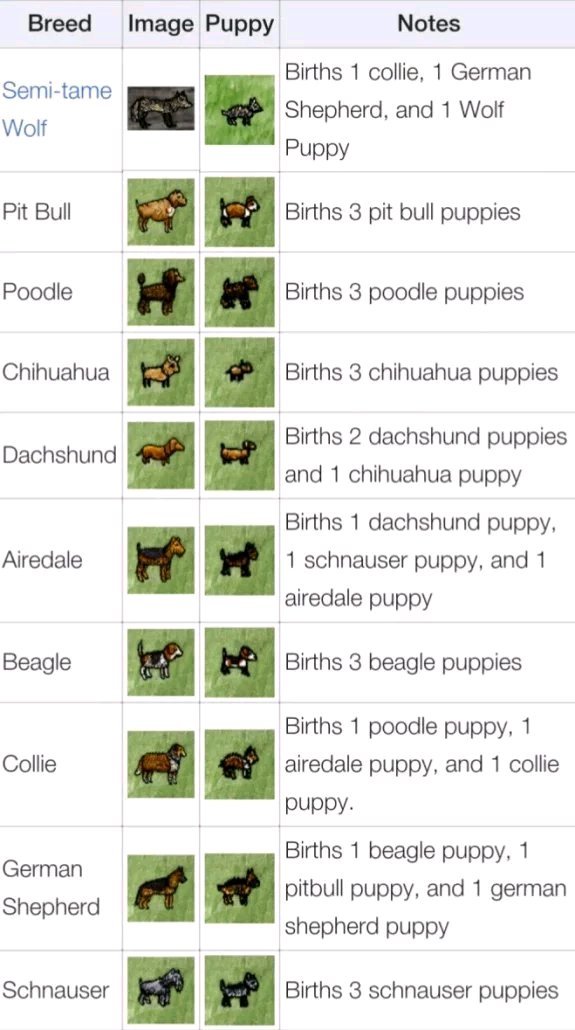 怀孕的狼可以生下比特犬和比格犬(一胎生),而不同的犬又能生不同的犬,一次三胎。和狼的喂养方式一样,也是要生羊肉怀孕,猪肉丝养大。品种建议自己摸索,不过问我也可以哦——