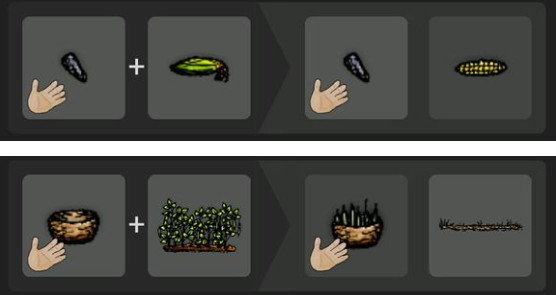 野生的马铃薯种植后生长成为马铃薯植株,需要再填一次土成为马铃薯田垄,成熟后用铁锹挖出,放到烤炉中烤一下可以吃。吃掉第一次会变成半个烤马铃薯。