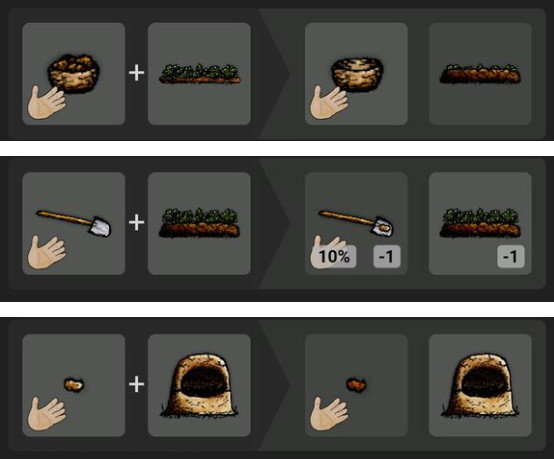 兔子陷阱的制作:直树枝用尖石划三次变成木桩,加上一根绳子[细绳(乳草+乳草)+细绳]就好了。陷阱放在兔子洞上,等待20秒就可以拾取死兔子了。建议只抓有小兔子的洞,以防兔子绝后以后没得抓。