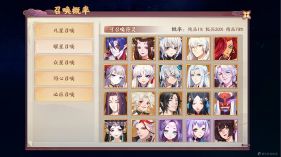1、召唤(最主要的获取符灵方式)