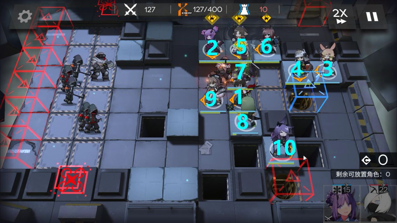 350杀:对应位置摆上阿肖和暗锁,克洛斯和白雪配合清理术士群