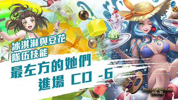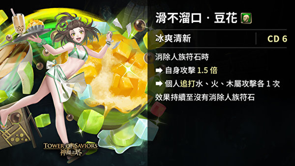 同为夏日消暑良品,当队伍中有「冰淇淋」及「豆花」作成员时,进入关卡后,最左方的「冰淇淋」及最左方的「豆花」的主动技能 CD 减少 6。