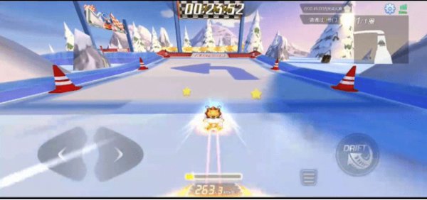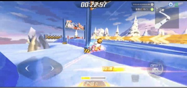 最后就还是剩踩加速带啦,看见加速带漂移然后踩上去就可以了,加速带会带着你跑向终点。