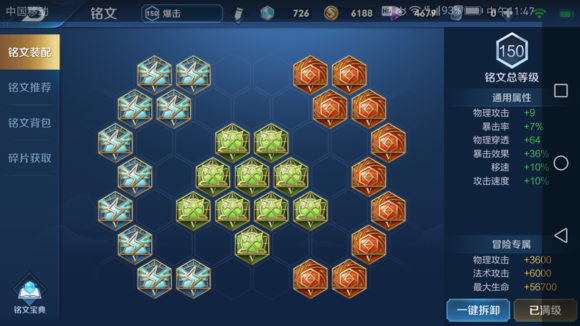 铭文我喜欢移速,可能是玩lol的习惯吧。关于暴击的问题,我喜欢看人品,关于溢满,我追求前中期伤害,大后期也不在乎这溢出了。